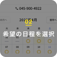 ご希望の来院日時を選択してください。予約は約1ヶ月先までお取りいただけます。
