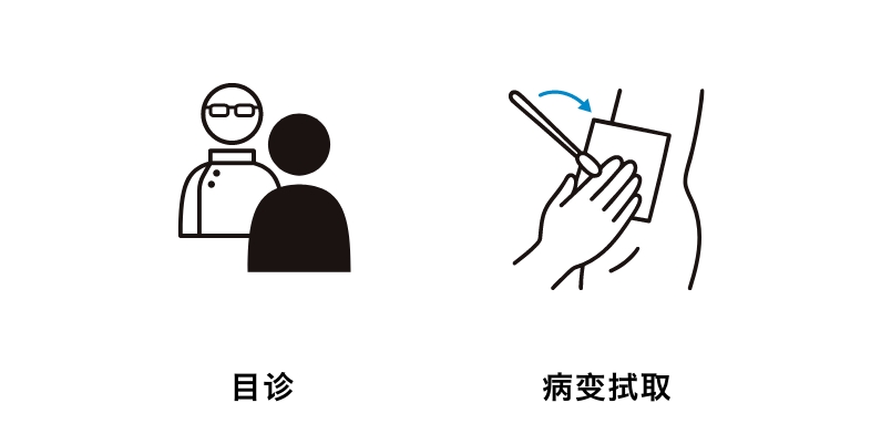 由专业医生通过视诊进行诊断。如出现相应症状,可当场开具治疗药物。此外,在男女均出现症状的情况下,也可以从病变部位采集胞样本,对病毒或细菌进行检测。