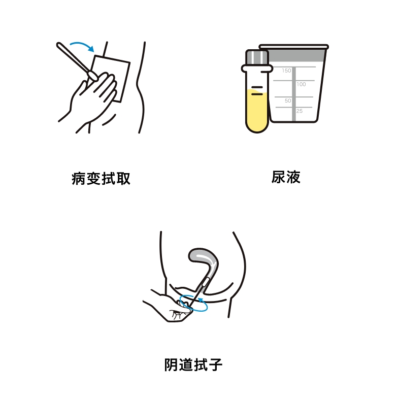 如果生殖器出现症状,将使用棉签从病变部位采集样本进行检测。