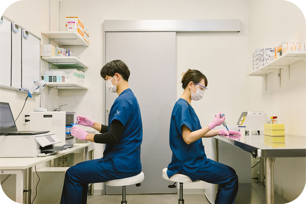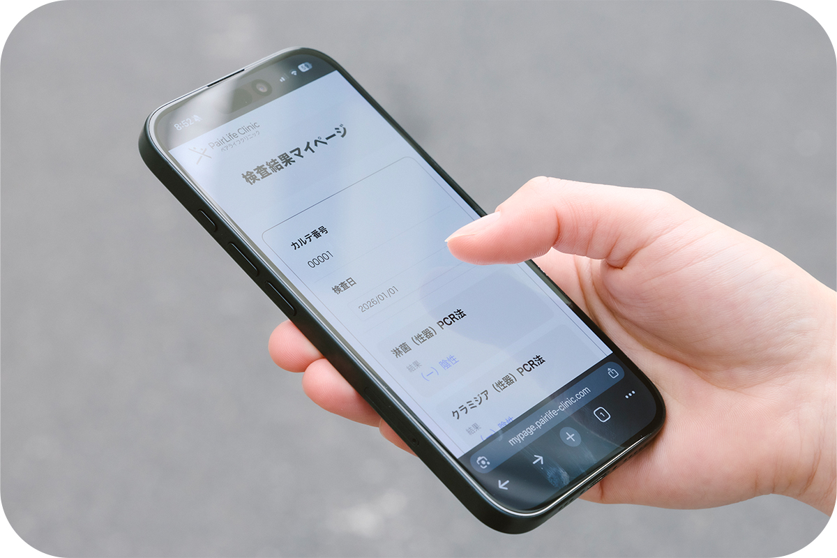 本院在所有院区均引入了高精度的性传播疾病专用 PCR 检测设备,并由具备专业知识的工作人员进行检测。此外,我们还导入了在线查询系统,患者可通过 Web 个人页面 随时随地查看检查结果,最短可在当天确认。