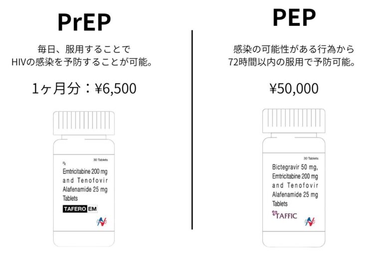 毎日服用することでHIVを予防する「PrEP」やHIV感染リスクのある不安な行為があった際に服用する「PEP」も取り扱っております。HIVに関してお悩みの方はお気軽に当院にご来院ください。