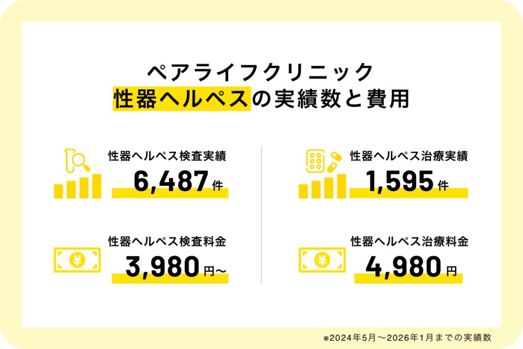 性器ヘルペス治療実績1,595件と多くの方の治療も行なってまいりました。当院では内服薬での治療を行なっております。