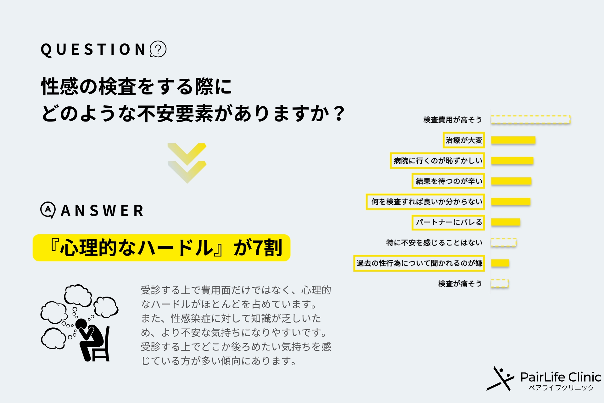 それに次いで多く挙がったのが、「治療が大変そう」「パートナーにバレる」「結果を待つのが怖い」「病院に行くのが恥ずかしい」「何を検査すればいいかわからない」など、“心理的な壁”が目立ちました。
